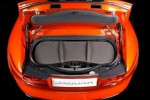 French luxury luggage specialist created the bespoke Jaguar F-TYPE luggage during 900 hours of work, using 8 layers of moulded wood. This is then covered by vegetal dyed leather in slate grey to match the car body, lined in mandarin orange colour, the signature colour of Moynat. Inside the trunk, an electric scooter is provided for use in urban areas.