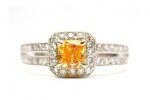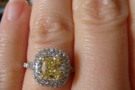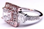 Engagement rings with colored diamond or gemstone center stones are also popular. One popular style is the “halo” setting which has a center stone surrounded by a ring of white diamonds. The halo design is highly thought of because it makes the engagement ring look larger than other settings.