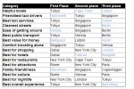 Ranking first for city with the best overall experience was Tokyo. The city also claimed top spots for helpfulness of locals, taxi service, local public transportation, and cleanliness of streets. Tokyo received high marks across the board, as it ranked among the top 10 in 13 of 16 categories in the survey.
