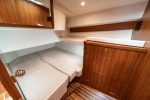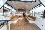 Further features that will make this yacht stand out from her competition include: an aft galley that’s excellent for entertaining, spacious living areas, a handcrafted wooden interior, two staterooms and two heads, multiple dining tables, an optional washing machine, and twin 370-horsepower Yanmar engines that offer dependable and sporty propulsion.