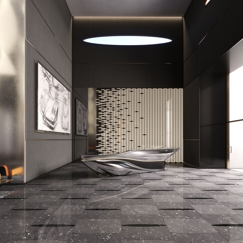 Inspired by the sinuous curves of Pagani Design, the Steel Atrium represents the epitome of art and luxury. From the moment you walk in, you are plunged in a masterpiece made of stainless steel, carbon fibers, lush leather and kinetic chandeliers. Yet, peace of mind is within reach, discover the pool area at the top of the tower. The professional team will be available 24/7 to help residents with housekeeping, arranging dinner plans or even making reservations. And lastly, workout in a modern gym with the newest equipment and plenty of space to exercise, then give yourself a treat in the sauna and steam rooms for men and women.
