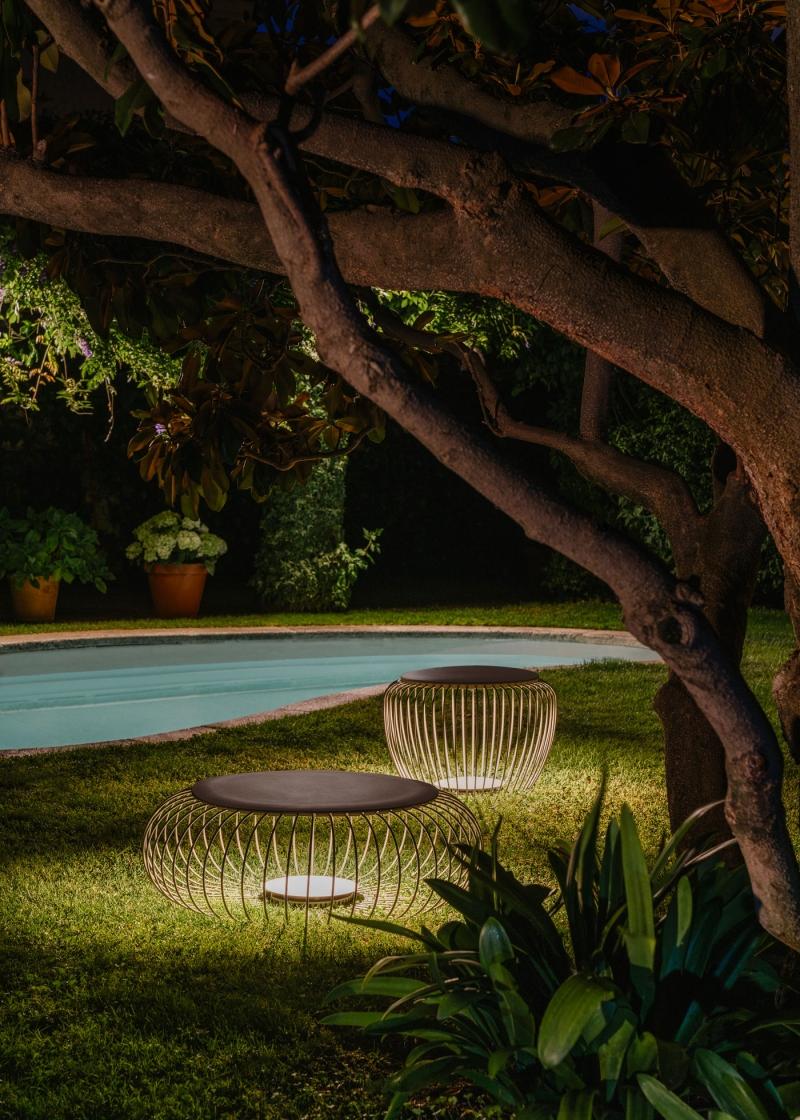 The pool terrace becomes an outdoor room in the summer and early autumn. Adding a few key pieces of furniture such as loungers and side tables makes it a great place to eat, read or socialise over drinks. This is where the Vibia Meridiano collection comes into its own. The floor lamp collection by Jordi Vilardell & Meritxell Vidal expressed as a useful side table converts terraces and lawns into radial islands of light and shade. The effect is romantic and painterly.