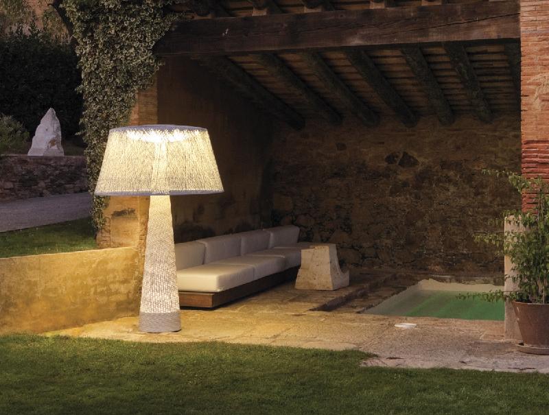 Making the outside feel more like the inside Wind is a collection of oversized lamp shades that take on a familiar form made with a high tech material. Glass fibre cord is tightly wrapped around a metal shade to provide a porous textured light. Designer Jordi Vilardell converts pool areas into living rooms with Wind, soft lighting, exaggerated forms and chill out ambience.
