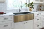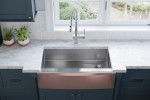 Elkay’s newest sink, the Stainless Steel Farmhouse with Interchangeable Apron Front, takes iconic design to the next level with a sink that is both timeless in appearance as well as versatile and fashion forward. This new sink blends the worlds of classic stainless steel with non-traditional, modern materials, giving designers and consumers the option to change the apron look, color and material without having to replace or reinstall the sink itself – a true industry first. The changeable apron front is available in a carefully curated selection of materials and colors including colored stainless steel, white fireclay and more to match your ever-evolving décor.