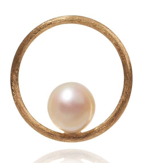 Crafted in 18 karat white gold with a textured black rhodium finish, this small hoop pendant features a pearl at its centre. Suspend from a fine chain and mixed with shades of gold to create a modern look.