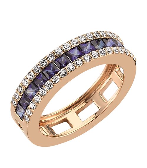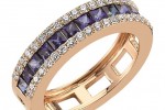 “The most regal of all colours and symbolising wisdom, virtue and good fortune, a row of lavish blue sapphires are the perfect choice to adorn Bee Goddess’ Mondrian ring,” says Harrods about this ring framed with twinkling white diamonds.