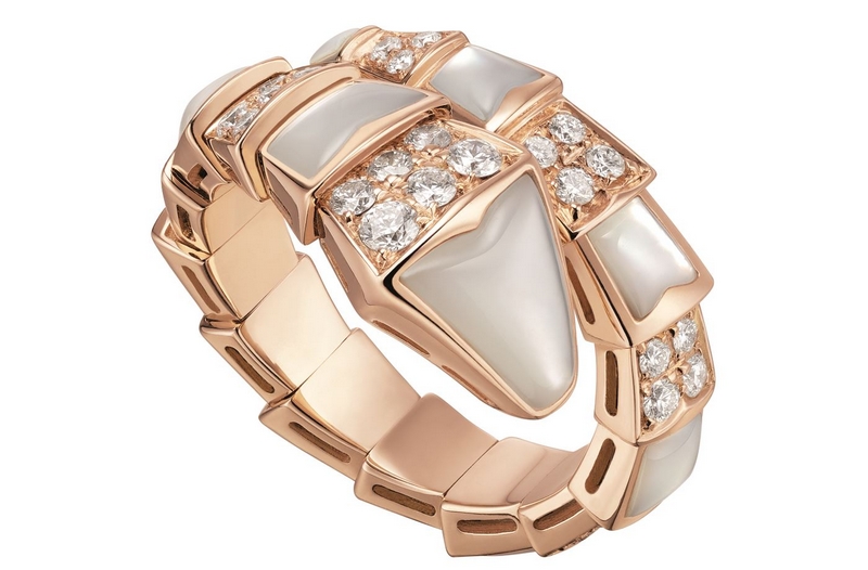 Bvlgari Rose Gold, Diamond and Mother of Pearl Serpenti Ring