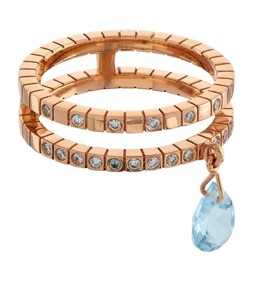 The ultra-chic design of this Mini Ring is the Pomellato’s most famous piece of jewellery and has been crafted with both rose and white gold and features a sparkling faceted White Topaz stone at the centre.