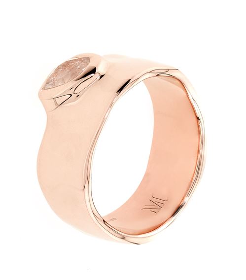 Inspired by the sea, the thick band has a slightly waved edge and is set with a multifaceted White Topaz gemstone in 18 carat rose gold- plated vermeil on sterling silver.