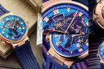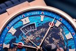 The Marine Hora Mundi’s dial is a masterpiece in itself, captivating with its interpretation of the terrestrial planisphere. Different materials and superimposed plates create a visually stunning effect. Hand-guilloché waves gently lap against the continents’ shorelines on a gold base, while a sunburst blue dial background is engraved with “wave” decorations. An additional sapphire plate displays luminescent gold hour-markers and engraved navy blue continents. For this exclusive edition, bright rose gold dots represent lights glowing across the Earth, a reminder that our planet never sleeps. The dial’s multiple elements are masterfully held together by an external flange, resulting in a brilliantly executed design achieved through meticulous craftsmanship.