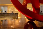 Highlights include glass sculptures in Yu Yue Heen restaurant by Australian Clare Belfrage; a wood sculpture in Tian Bar by Richard Hutton of the Netherlands; mixed media sculptures by the American team of Jeremy Newman and Allison Ciancibelli in Caffe Mondo; paintings by Korean artist Yun Hee Toh in the Executive Club Lounge; nine sculptures by Yang Don Dong throughout the Hotel; and Lee Man Seng’s unique Chinese seal-inspired timber sculptures in Yu Yue Heen.