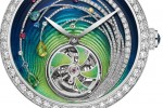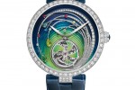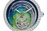Maison Chaumet introduces a Flying Tourbillon watch (price: 283’500 CHF) in white gold inspired by the sun’s blazing motion and changing hues. In its permanent orbit, this ever-radiant miniature sun rises and sets, passing through midday to midnight.