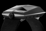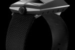 The movement features a kind of spring-driven carriage that drives the hour display visible on the side of the watch by means of a red-lacquered cursor moving beneath the metallised sapphire crystal every 60 minutes. The dragging minutes, appearing ona black disc, are read off on the top of the case that also features beadblasted titanium plates. Time-setting is done via a screw-lock crown at 12 o’clock. The Spacecraft watch is fitted with a black polyamide mesh strap.