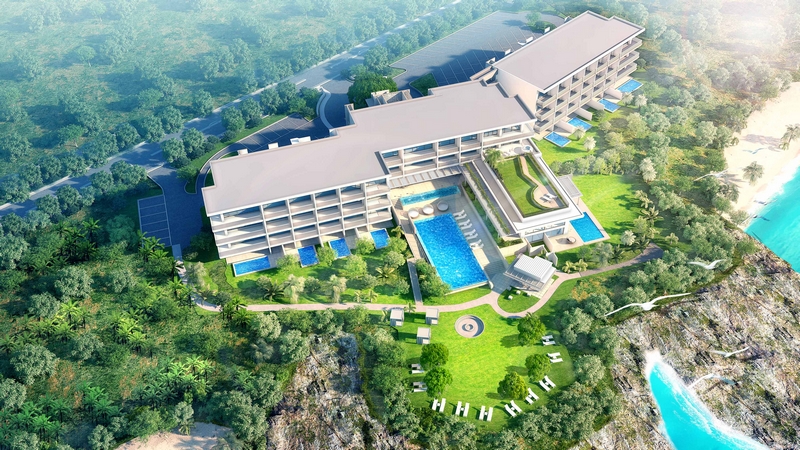 The new hotel is nestled in natural greenery and lushly landscaped gardens on Irabu Island.