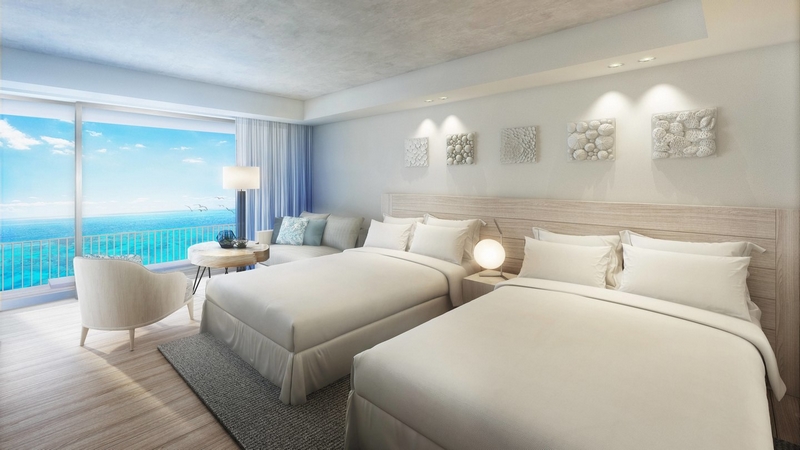 The rooms that range from 495 square feet to 1,290 square feet offer a complete set of amenities and private balconies with views of the white sandy beach and azure ocean, with several suites in the hotel also featuring private swimming pools. The clean, crisp interior design of the hotel and guest rooms showcase motifs of island elements, including “Minsah” weaving, the traditional Okinawan textile and crafts inspired by the surrounding coral reefs.