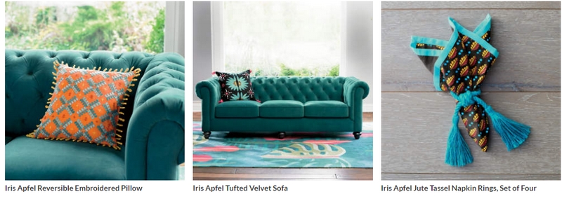‘Iris Loves grandinroad” collection features Iris Apfel’s signature use of color, pattern, embellishment, and global inspirations.