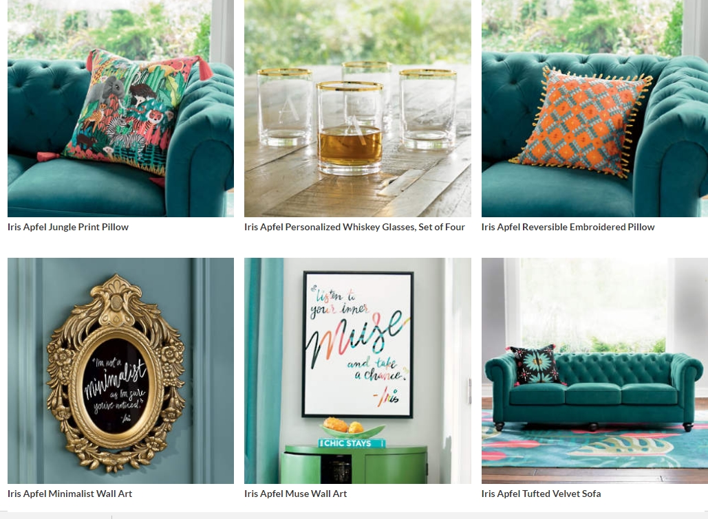 The legendary Iris Apfel and online retailer grandinroad launch exclusive home collection, Iris Loves grandinroad.; image: grandinroad.com