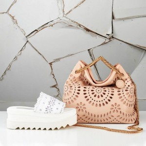 stella mccartney soft hued Noma bags and saw-edged slides featuring the patterned cut-outs
