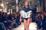 Moving into sportier, surfer territory, the anorak made something of a luxe comeback tucked into high-waisted crochet bikini briefs, teamed with shorts and clashed with vinyl floral joggers. Culminating with super-shine sportswear for night, grommet-punched leather, balloon-sleeved mini dresses and Gigi Hadid‘s all-black, one-shoulder vest teamed with a harness belt cinching-in black riveted joggers, expect to see Marant girls borrowing from the boys too in the season ahead. Shop Isabel Marant on harrods.