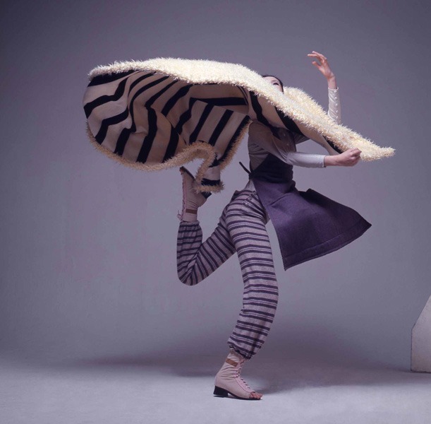 In 1960, Japan hosted the World Design Conference, for the first time. It was an international design symposium, whose aim was to promote interactions with the global design world. Miyake, who was studying at Tama Art University’s Department of Graphic Design, sent a letter to the Secretariat asking why clothing design was not included in the program. His focus upon clothing as design rather than fashion attracted attention. He subsequently started to design his own clothes and created clothing for Toyo Rayon’s (now, Toray Industries, Inc.) 1963 Calendar by request of art director Jo Murakoshi. This was his first collection. In 1963, after his graduation from University, he announced “Nuno to ishi no uta” (Poems of cloth and stone).