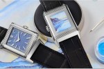 Remarkable guillochage work is featured on the front of the piece. Jaeger‑LeCoultre’s artisan guillocheur has embellished the dial with the help of a century-old machine requiring considerable expertise and years of experience. The dial’s small lozenges, giving the illusion as though they have been weaved, were created with finesse and delicate rendering. The engraving was then covered in translucent enamel. The colour of which, was carefully chosen to match the painting’s tone recreated on the reverse side.