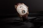 The lower half of the dial is dominated by the tourbillon. A newly designed bridge in polished pink gold secures the titanium tourbillon cage (which weighs around 0.3 grams with its components) as it completes one revolution every 60 seconds. The fine tourbillon bridge and wide aperture maximise transparency and light, drawing the eye right through the mechanism.