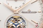 For the peripheral date display the Manufacture’s engineers chose Jaeger-LeCoultre’s signature ‘jumping’ complication. Every month, the date hand makes 90-degree jump, gliding rapidly from the 15th to the 16th, in order not to obscure the tourbillon.