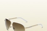 Crafted from a special lightweight alloy, Techno Color shades pair minimal frames with boldly colored lenses. The collection includes classic aviator sunglasses with gucci logo on temple (100% UVA/UVB protection), techno color ultra-light bamboo sunglasses reinterpreted for spring/summer 2014 collection, and gold endura cat-eye sunglasses.