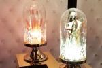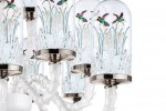 The chandelier, as well as the wall lamps, bases and table lamps in the Jardin de Verre collection reproduce the most beautiful bell shape of Wardian cases and enclose three different items made from glass. The complexity and sheer beauty of the glass objects are a declaration of the skill and art of the Murano Masters: the desert plants with curved leaves; the delicate, graceful butterflies sitting on fine branches; the notched cup of bell and its precious clapper.