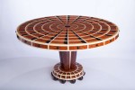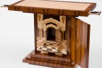 The grand prize in the 2013 Veneer Tech Craftsman’s Challenge goes to Craig Thibodeau, CT Fine Furniture, for his art deco table with pau ferro veneer exterior, quilted maple veneer top bordered with Gabon ebony inlay, and 15 different types of veneer for the trompe l’oeil interior.