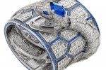 Bulgari Serpenti Misteriosi Romani watch is a cuff featuring a snake sinuously coiled around it. To reinforce the theme, the cuff is embellished with baguette-cut diamond scales, so that the wrist inhabits the design and becomes part of the snake itself. Truly spectacular, this one of a kind creation is the most expensive high-end timepiece ever made by Bvlgari, comprising a massive number of precious stones — the snakehead is crowned with a 10-carat Sri Lankan sapphire and a total of more than 60 carats of diamonds and 35 carats of sapphires form the snake’s body and scales.