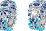 When the season of snow inspires Van Cleef & Arpels’ imagination, jewels take on a white diamond mantle. Precious snowflakes, openwork ribbons and frosty corollas compose a hymn to the splendor of winter. The creations take on a delicate variety of forms, whether crystalizing the lightness of frost or immortalizing the evanescence of a snowy landscape. Part of the Contes d’Hiver collection, Van Cleef & Arpels Jardin de Glace Secret white gold watch features one oval-cut sapphire of 10.30 carats (Sri Lanka), round, marquise-cut and pear-shaped sapphires, turquoise, round and baguette-cut diamonds, and a quartz movement.