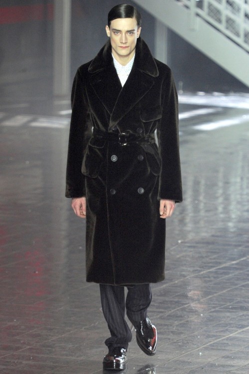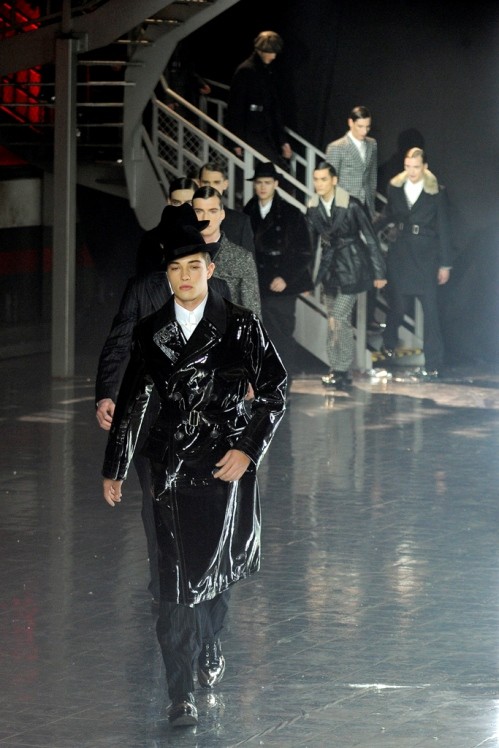 John Galliano Menswear show closed with the so called “stars” of the era meaning that suits and shirts were slim cut and glittering. The Fall/Winter 2012 /13 collection encompassed a mix of styles and materials but focused heavily on exploring different silhouettes & tailoring from the bottom of the 1920s american gangster pyramid all the way to the top.