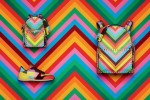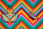 The 1973 print is the latest addition to the Spring 2015 accessories representing new geometric patterns mixed with a vibrant color palette. The ever popular Rockstuds, lockbag and Va-va-voom bags are reinterpreted in a kaleidoscopic pattern, giving these edgy styles a boost of color and fresh feel for the new season.