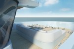 – the 60-sqm sun deck over the superstrucure that is a large sunbathing and lounge area, featuring the vast 3×3-meter sun-pad with adjustable backs, the fully equipped bar with counter and stools, and the sofas seating