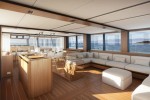 Interior layout and styling The WallyAce 26m Kanga features over 50 sqm of social area incorporated in the glass walled superstructure, that includes the lounge with large sofas, the dining table for 10-12 guests, and the steering and navigation station.