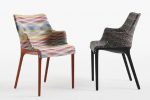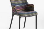 Missoni’s trademark zig-zag effect is brought to life using colourful patterning on a dark base, creating a high-impact geometric design which dovetails brilliantly with the signature Kartell style. The weave of the fabric means that it can be reversed, with both sides offering up stunning results. One side has a white base colour, which contrasts with the rust-coloured legs and offers just a hint of the colourful thread, creating broad, recurring patterns. Meanwhile, the other side offers a dark base colour, allowing the splashes of colour to become the defining feature of the piece.
