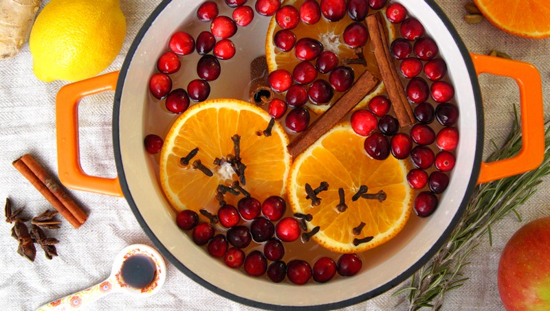 A simmering potpourri is essentially made on a stovetop with all the fragrant ingredients simmering together to create a lovely sensation. The scent arouses a nostalgic feeling and reminds you of all the good, comforting times. Make a concoction of orange, cinnamon, cloves and cranberries to remind you of the cozy winter days or mix together rose petals, lemon and essential oils, so the spring vibes travel throughout your home.