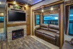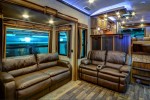Montana 3820FK a show-stopper. “With a plush, wraparound booth dinette located beneath the front automotive windshield, there is nothing else like it on the market today,” noted Montana product manager Jason Gill. “Add to this the expansive, central living area with entertainment center, opposing slides with sofas, and the theater seating and you have a coach that is both innovative and incredibly spacious. Customers have been standing in line to see it at the RV shows this year!”