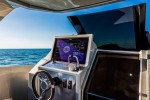 The full touch screen dashboard, developed in collaboration with Naviop, is a distinctive design element and the true heart of the boat. In addition to integrating all the navigation equipment, it also controls all the systems and the home automation, constituting an integrated bridge system normally found only on the most prestigious superyachts.