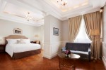 The renovation of King George, led by renowned Greek architect Alexandros K. Samaras with local artisans, returns the hotel to its original splendour while enhancing its contemporary style. The storied hotel features 59 elegant guest rooms and 43 exceptional suites, all with impressive views of the city and the Acropolis. The neo-classical Greek interiors include silk and satin upholstery with distinct furnishings, authentic to the destination. The magnificent two-bedroom Penthouse Suite spans 3,770 square feet, across the entire ninth floor of the hotel, featuring: a private terrace offering a panorama of the city; a swimming pool looking out to the Parthenon; an open-air Jacuzzi; and private elevator access. Completely redesigned, the Penthouse Suite is adorned with a selection of original 19th century antiques and paintings.