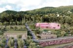 Lancôme’s clear intention to carry out this sober, sustainable project is as radical as its commitment. The project was executed by the architects Lucie Niney and Thibault Marca from the NeM agency, based on a passive bioclimatic design. The existing dry-stone walls* were conserved and restored according to the traditional method, and the new agricultural buildings are constructed in harmony with the appearance of those stone walls in order to blend in with the natural landscape. While the new Rose House was renovated in keeping with the size and architectural identity of the existing Provence-style home, it takes on a contemporary appearance using colors and materials true to the heritage and expertise of the Grasse region. As for the conversion of the principal building, the materials used for the outdoor cladding, roofs and carpentry are all pink, limiting the color scheme of the space to create a coherent whole. Pink is one of the local colors: it is naturally present in the flowers and plants of the region, and it often adorns the facades of houses in Grasse, in addition to reflecting the beauty brand’s image.