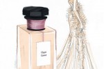 The perfume lineup evokes the feel of the House’s sumptuous fabrics and showcases distinctive character that appeals to both men and women. The names of the perfumes combine the primary elements used to create the scents and reference their high fashion origins. Each fragrance is accompanied by a couture sketch.