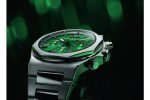 The Laureato Chronograph Aston Martin Edition is the latest creation from Girard Perregaux, made in collaboration with Aston Martin. Its dial is suffused with a delightfully decadent application of what is now known as “Aston Martin Green”, achieved by painstakingly applying paint twenty-one times to the dial, forming seven distinct layers of paint as a result. The automotive influences also encompass cross-hatching, a diamond-like pattern first seen with the ultra-luxury car manufacturer’s ‘AM’ logo (1921 – 1926). This motif was also inspired by the quilted seats found in the British brand’s numerous high-performance sports cars.