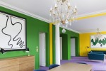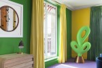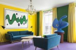 The suite’s salon was transformed just like the museum in the Disney comics: the floor is swathed in a zingy purple carpet and minimalist modern furniture stands in relief against vivid yellow and green walls.