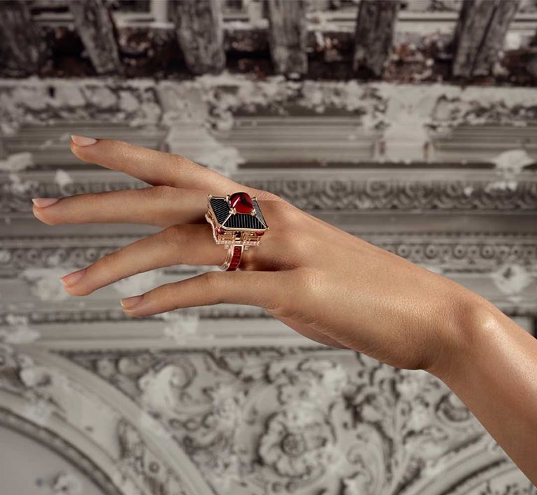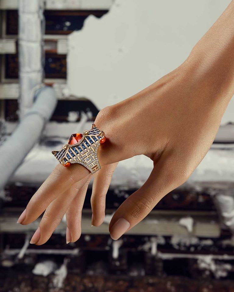 How to express undying love to one’s beloved? In the 16th century, the tradition of exchanging wedding bands took a new form of expression and a new type of ring appeared: suitors began to give their fiancées a house ring, giving a dream the structure of a life plan. Chaumet is reviving this lovers’ tradition through its Trésors d’Ailleurs High Jewellery collection that marries the rigour of architecture with the rush of passion.