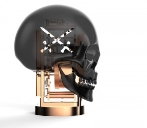 L’Epée 1839 skull By Kostas Metaxas displays the time in the sockets of the eye