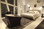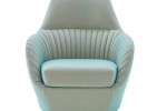 Amédée is a settee and armchair combination, designed around a lumbar support which is quiltedand stitched just like the bucket seats of the best Italian motor cars.The armchair may be rotating, and there is also a footstool for when it’s time to relax.