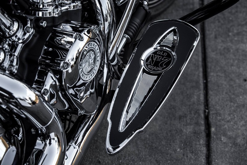 The bikes also features a number of Jack Daniel’s “Old No. 7” logos and custom badging is interspersed over the bike, including logoed billet driver and passenger floorboards, leather tank pouch, aluminium tank console with motorcycle number and unique cam, primary and air intake covers.
