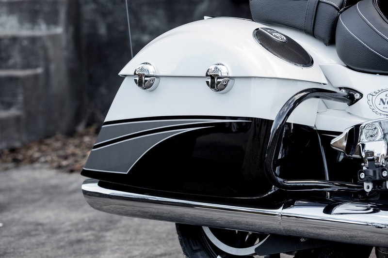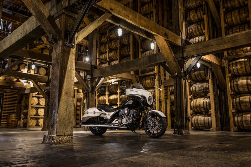 The individually numbered bikes come with a two-year unlimited mileage factory warranty and free membership in the Indian Motorcycle Riders Group (IMRG) for one year. The Limited Edition Chieftain had design input from Klock Werks Kustom Cycles of Mitchell, South Dakota who came up with a wide array of custom details such as a one-of-a-kind white and black crystal paint job with charcoal colored accents inspired by Jack Daniel’s unique charcoal-mellowing process.